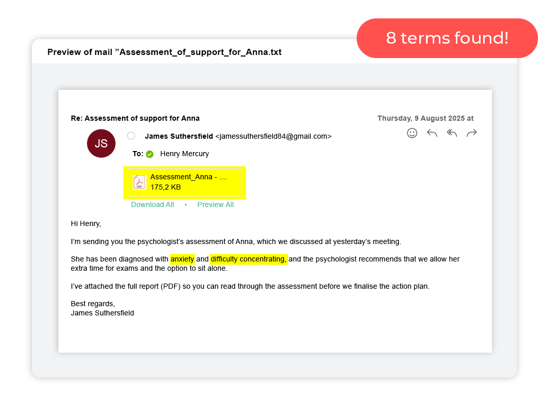 DataMapper is an IT tool that uses artificial intelligence to identify documents, emails, and images containing sensitive terms. It gives you the opportunity to finally clean up files with personal data and other sensitive information so you can comply with privacy regulations such as the UK GDPR. The cleanup becomes more accurate and significantly faster than if you had to do it manually.