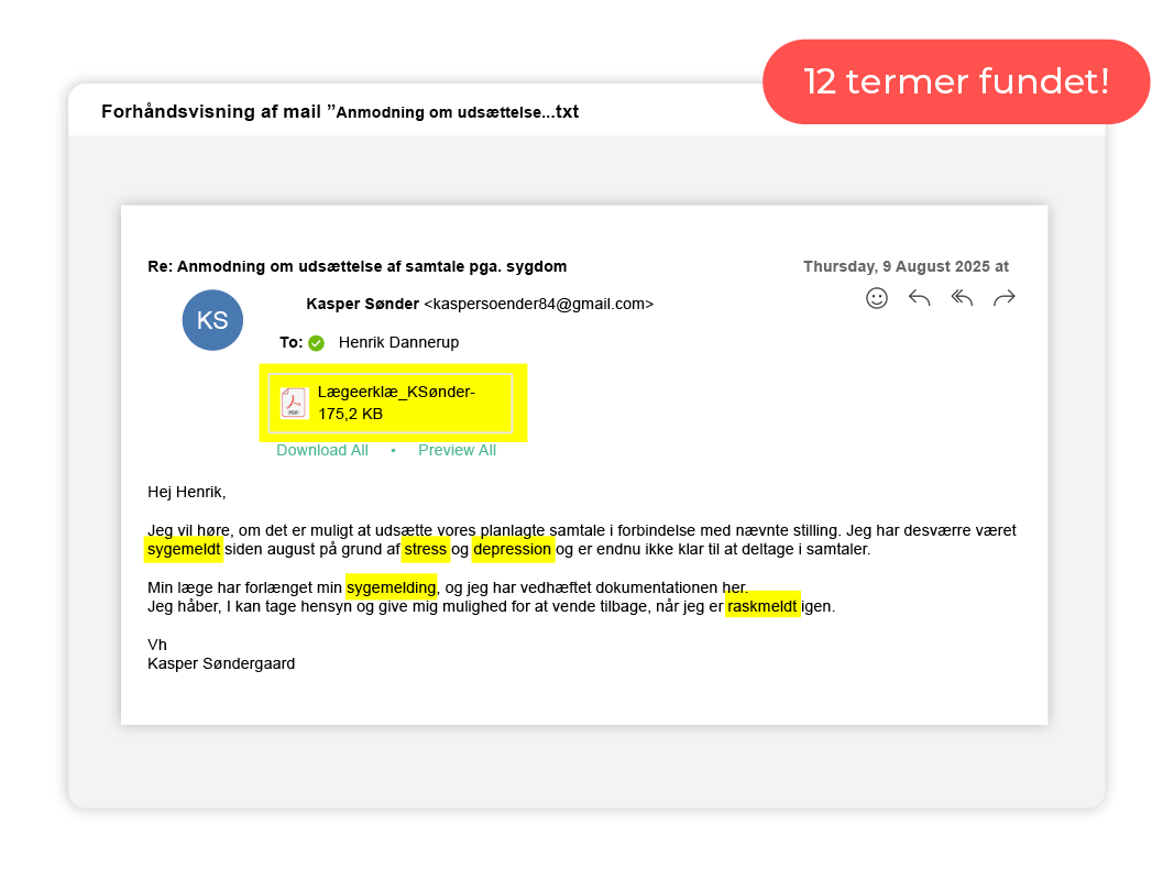 Dokumenter, mails og billeder fundet i virksomhedens systemer.