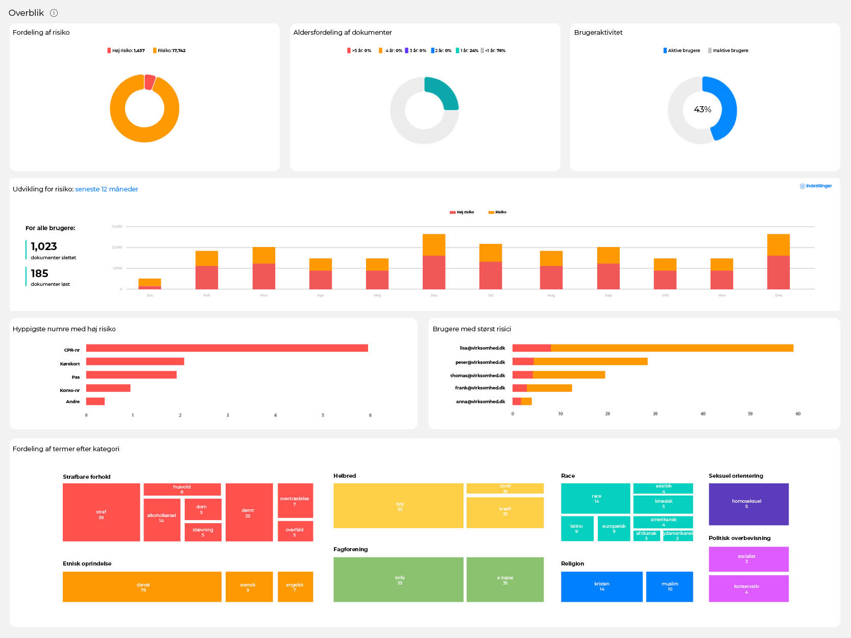 Et dashboard med den vigtigste statistik giver et komplet overblik over filerne.